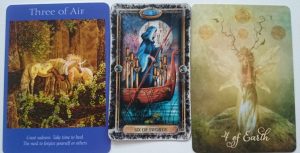 För mig låter det som om det är en vecka då vi behöver vila lite och lägga tråkigheter bakom oss. Försök att ta det lugnt och gör en ny plan så att du kan manifestera det du VILL ha istället för det du vill slippa. Kortet sex i svärd visar också att du påbörjat resan bort från det du vill lämna.